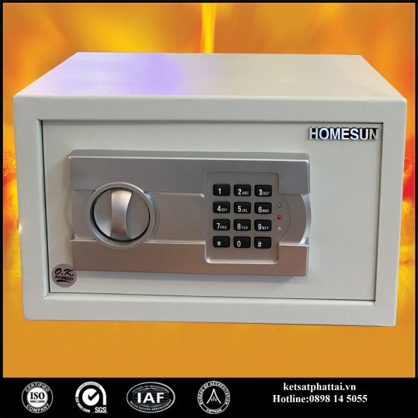 Nếu ai thích dòng két sắt cho khách sạn thì mẫu KS25 có lẽ là sản phẩm thích hợp nhất. Với kích thước ngoài 250 * 320 * 250 mm có báo động đóng két sau 3s. Được nhiều khách sạn, resort lựa chọn cho các phòng sang trọng cao cấp.