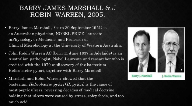 Quay ngược trở về đầu các năm XX, ta sẽ đơn giản thấy rằng phần lớn số đông thời kỳ này cho là lý do, triệu chứng hay dấu hiệu) của đau dạ dày chính do lối sống sinh hoạt, thực đơn ăn uống mỗi ngày, thần kinh tâm lý áp lực căng quá mức, sử dụng các chất thúc đẩy (bia, rượu, thuốc lá, ...) quá mức .... Ngoài ra, chủ đề nhiều axit trong bao tử (bao tử) hay di truyền cũng là nguyên do gây nên bệnh bao tử này. Nhưng cũng chưa chắc là như thế, bởi đây cũng chỉ là những nguyên tố rất tốt cho đau dạ dày hay đau dạ dày ngày một phát triển thành bệnh đau dạ dày, điều này có thể trở nên thảm hại hơn khi tăng trưởng thành xuất huyết hay ung thư. Trái là đúng như thế, vào khoảng 1982 (1983), hai khoa học gia Úc là Barry Marshall và Robin Warren đã công bố thành công công trình phân lập với nuôi cấy để xác định vi khuẩn gây nên bệnh viêm loét bao tử, tá tràng chính là vi khuẩn tên Helicobacter Pylori, viết tắt HP. Ngoài ra theo thực tại còn do thói quen quá phụ thuộc hay dùng nhiều những thuốc chống viêm, giảm đau, ... Việc này sẽ làm cho prostaglandine là 1 mẫu chất giúp đảm bảo an toàn cho dạ dày hay bao tử sụt giảm đáng kể, bởi vì lại rất dễ gây viêm loét.biểu hiện, biểu hiện hay triệu chứng đau bao tử (bao tử)Chúng ta có thể tổng hợp lại vài yếu tố chính sau đây sẽ phần nào giúp hiểu rõ hơn về triệu chứng hay nguyên nhân với đau bao tử1/ Triệu chứng đau bao tử cũng có thể là kém ăn hay ăn kém