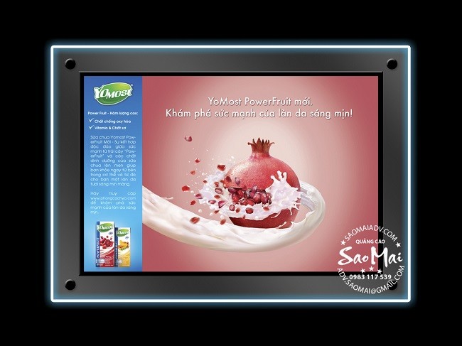 Hộp đèn mica siêu mỏng dùng trong biển hiệu quảng cáo sản phẩm cho các dịch vụ kinh doanh mỹ phẩm, cafe, giải khát, diện thoại….