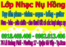 Cửa hàng nhạc cụ - lớp nhạc - cơ sở sản xuất đàn Nụ Hồng chuyên dạy đàn: Piano - violon - organ - trống - guitar. Mua - bán - sữa chữa - cho thuê tất cả các loại nhạc cụ.