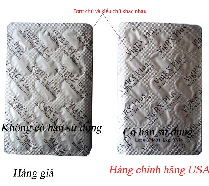 Kiểm tra mã sản phẩm in trên vỏ hộp để biết hàng giả hàng thật tại website: vigrxplus.comHạn sử dụng của hàng thật thường là 2 năm, số lô và hạn sử dụng được in trên vỉ thước. Hàng giả hạn sử dụng chỉ được in trên vỏ hộpVigRX Plus thật bao bì được in rõ ràng sắc nét