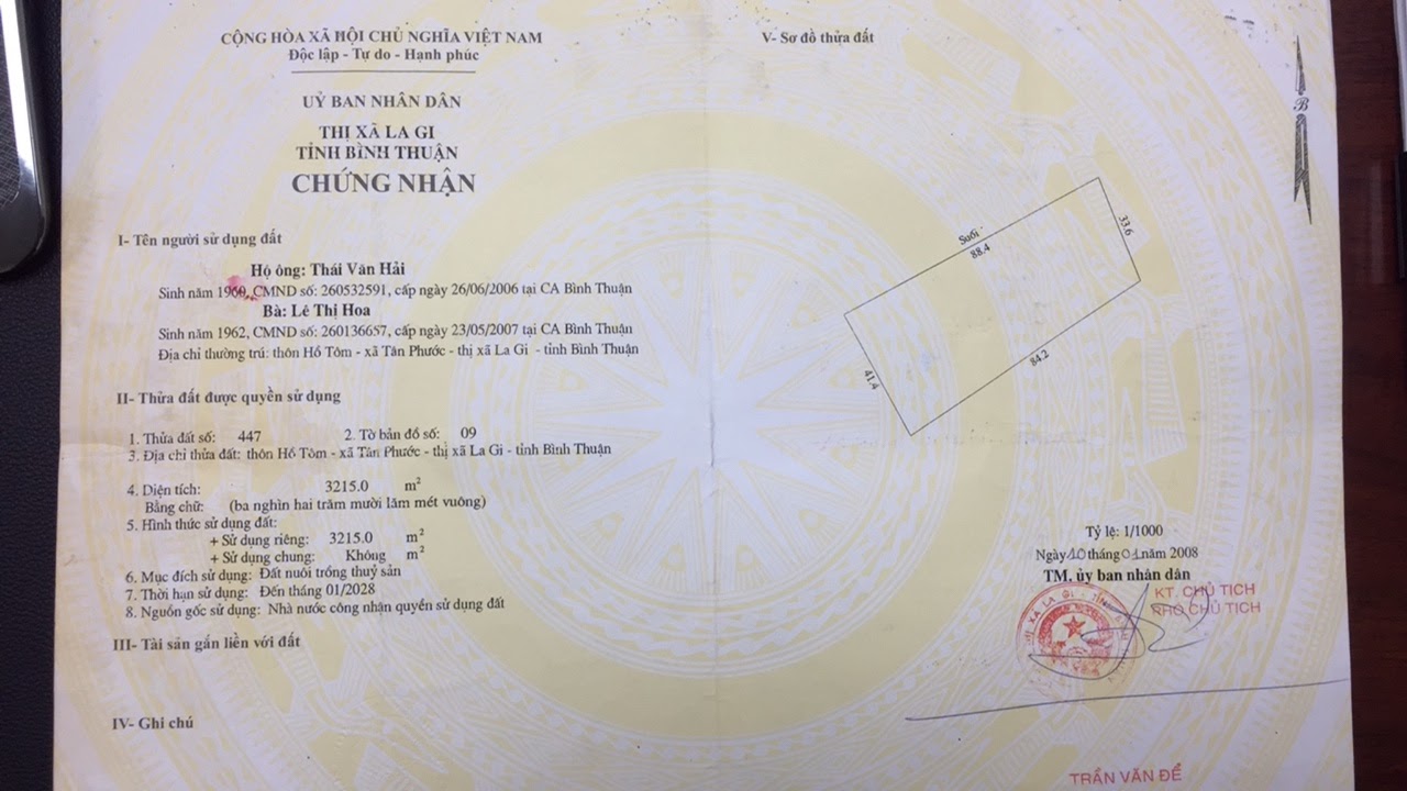 Địa chỉ lô đất: khu phố 8,phường phước lộc,thị xã La Gi,Tỉnh Bình Thuận