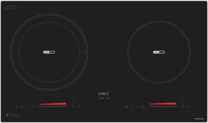 Tích hợp công nghệ Inverter giúp cho các sản phẩm bếp từ Topy hoạt động bền bỉ, tiết kiệm điện năng, đun nấu thả ga mà không phải lo tốn điện. Để làm được điều đó hãng đã phải nâng cấp toàn bộ hệ thống linh kiện, mâm từ của bếp 100% các sản phẩm đều trang bị linh kiện E.G.O siêu bền có chất lượng tốt nhất hiện nay