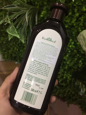 Dầu Gội Thảo Dược Krauterhof-Rosmarin Cho Tóc Dầu- Dung tích: 500 ml - Giá bán: 175.000 vnđSẢN PHẨM ĐƯỢC NHẬP KHẨU CHÍNH HÃNG VÀ PHÂN PHỐI ĐỘC QUYỀN TẠI VIỆT NAM. Tính năng sản phẩm- Cái tên Rosmarinus được đặt theo tiếng Latin, trong đó Ros nghĩa là sương, marinus có nghĩa là biển, gọi đầy đủ là Sương của biển ý nói về nguồn gốc của loại cây này là ở trên bờ biển vùng Địa Trung Hải. Người ta phát hiện ra công dụng của cây hương thảo là bởi sự có mặt của các flavonoid, tính chất chống oxy hóa nhờ thành phần axit rosmarinic.- Trong ngành công nghiệp mỹ phẩm, hương thảo được sử dụng làm nguyên liệu để sản xuất kem dưỡng da, xà bông, lotion, nước hoa, nước tắm thảo dược, Dầu gội đầu thảo dược, nước xả, kem bôi mặt, thuốc nhuộm tóc, gói tỏa hương thơm,… được rất nhiều người yêu thích.- Riêng đối với Dầu gội thảo dược chiết xuất từ cây Hương Thảo giúp thoáng chân tóc bảo vệ tóc chống lại oxy hóa nhờ thành phần axit rosmarinic và làm làm khoẻ và dưỡng tóc, cho tóc sáng tự nhiên, mềm mại. Sử dụng tốt cho các loại tóc bị nhờn và bị dầu.