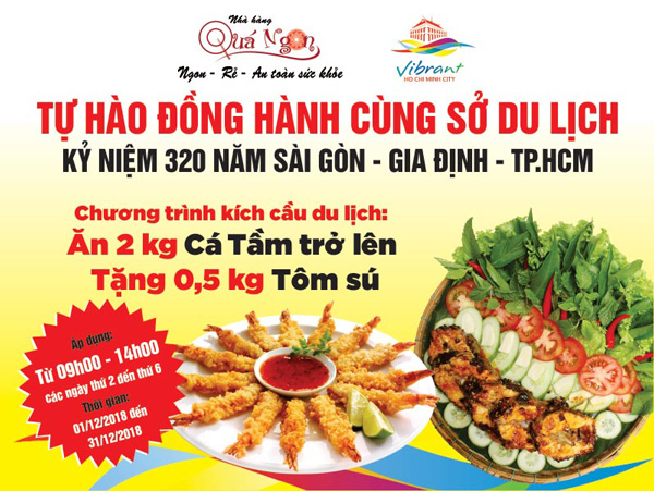 Tự hào là đơn vị cùng đồng hành cùng Sở Du lịch trong Kỷ niệm 320 năm thành lập Sài Gòn – Chợ Lớn – Gia Định – TP Hồ Chí Minh, nhà hàng Quá Ngon mang đến chương trình “Ăn Cá Tầm – Tặng Tôm Sú” nhằm giới thiệu đến thực khách những món ăn đặc sắc, hội tụ tinh hoa ẩm thực Việt.