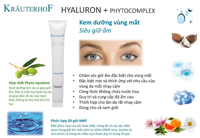 Kem Dưỡng Chống Lão Hóa Mắt KrauterhofSẢN PHẨM NHẬP KHẨU CHÍNH HÃNG VÀ PHÂN PHỐI ĐỘC QUYỀN TẠI VIỆT NAM Tính năng sản phẩm Với 4 tính năng giúp Kem Dưỡng Mắt Krauterhof là một sản phẩm trợ giúp không thể thiếu trong cuộc chiến chống lão hóa vùng da mắt.- Làm mịn nếp nhăn vùng mắt: Với hai dạng axit hyaluronic (với trọng lượng phân tử thấp và cao). Cũng chứa squalene với chất chống oxy hóa mạnh và bảy chất chiết xuất từ ​​thiên nhiên. Kem dưỡng ẩm của nó và giúp chống lại các nếp nhăn và làm mịn các nếp nhăn. - Làm căng da phần đuôi mắt: Với thành phần thiên nhiên giúp tái tạo da làm cho lớp da phần nhạy cảm như đuôi mắt lấy lại sự đàn hồi phục hồi nhanh chóng.- Làm sáng vùng da mắt, chống quầng thâm: Sau thời gian sử dụng kem giúp tái tạo da làm cho da mắt sáng hơn trông thấy - Dưỡng ẩm sâu: Hợp chất Phyto squalane-Nuôi dưỡng duy trì sự cân bằng nước của làn da; Đây là một loại lipid của da và giúp bảo vệ các loại lipid khác không bị ôxy hoá làm hư hại.- Giá bán: 355.000 vnđ