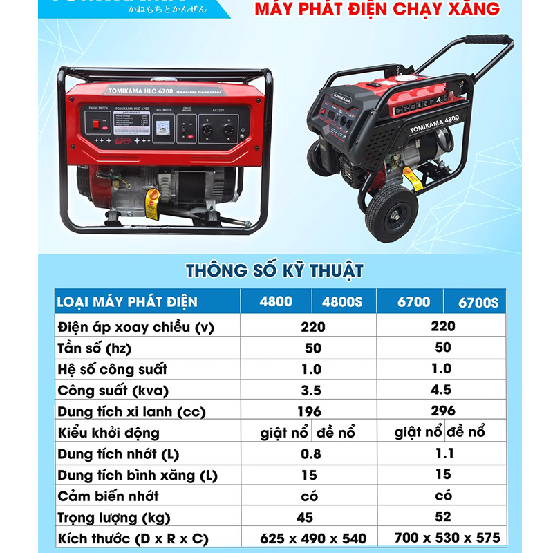Dòng máy phát điện gia đình Tomikama 4800 là đời mới nhất của Tomikama hiện nay, sản xuất trên công nghệ hiện đại, tiện nghi mà giá thành phù hợp với mọi gia đình