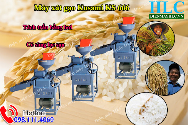 Máy xát gạo Kusami KS 666 xát lúa, xát thóc bằng hơi,chỉ cần một lần xát là ra gạo trắng, sạch sẽ