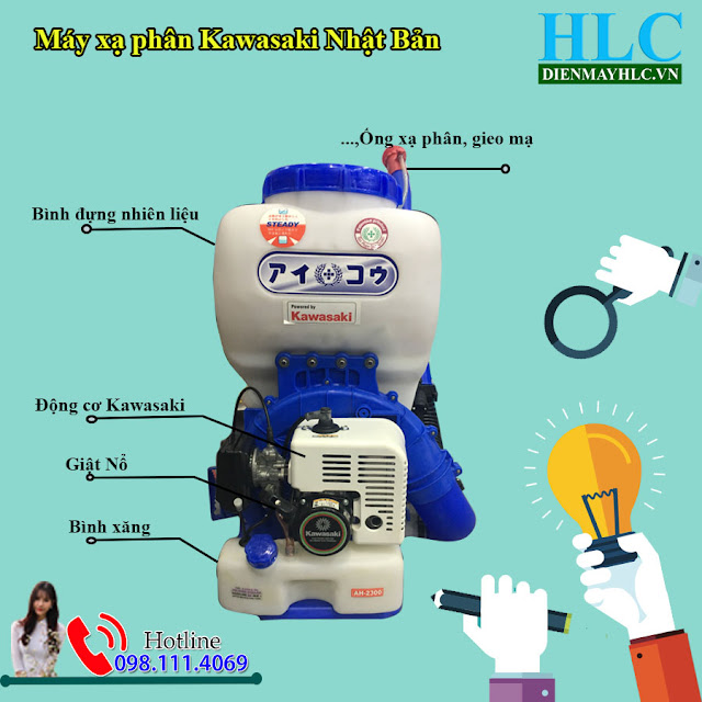 Máy xạ phân Kawasaki nhập khẩu Nhật Bản, sản phẩm chất lượng cao, đa chức năng, sử dụng lâu dài, sản phẩm công ty HLC, bảo hành 1 năm.