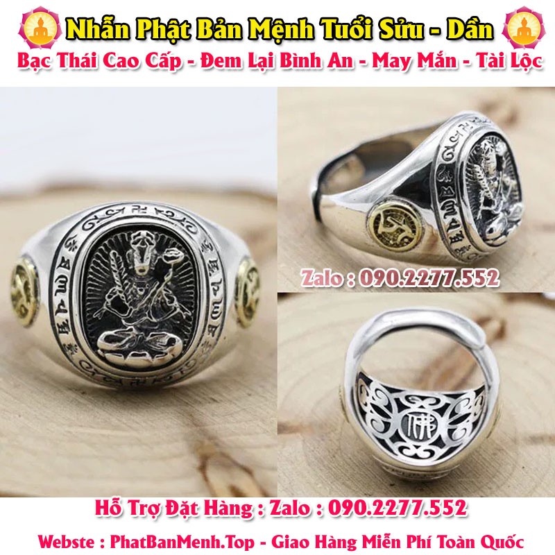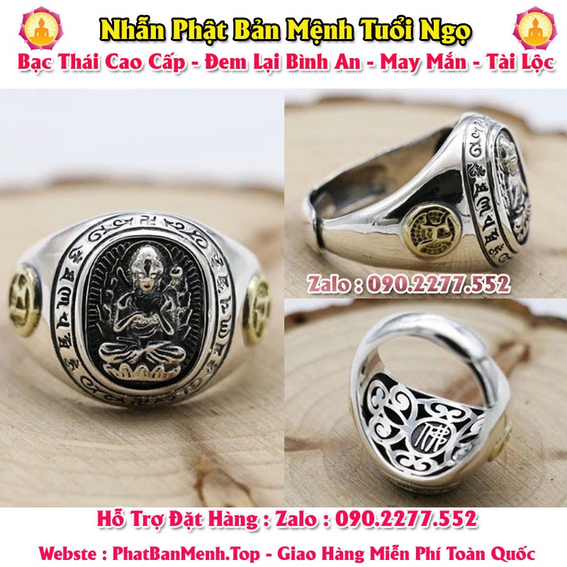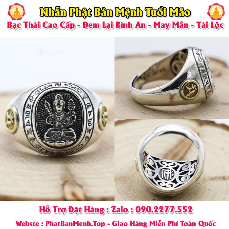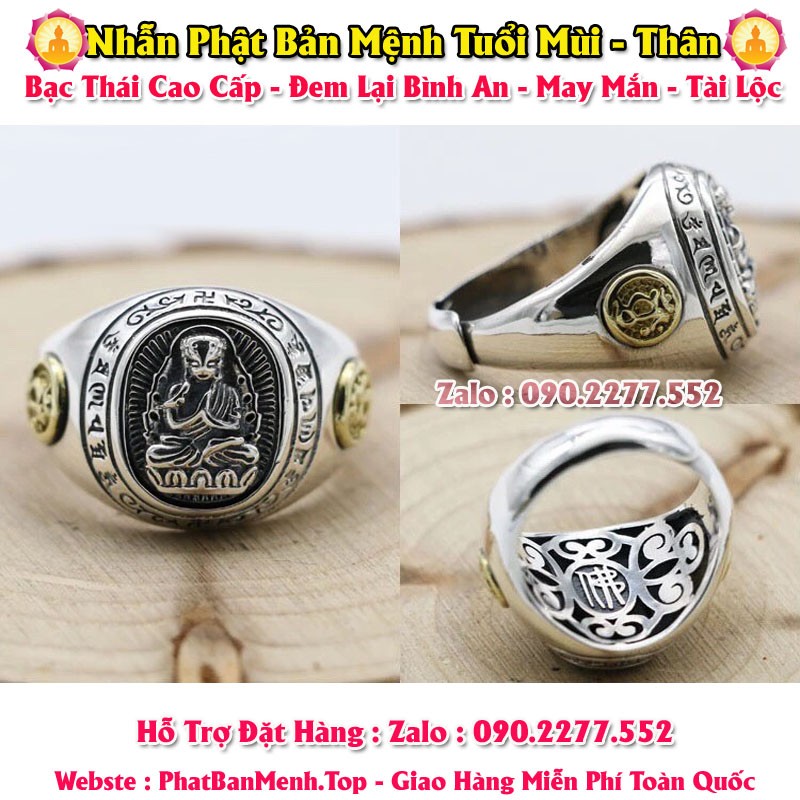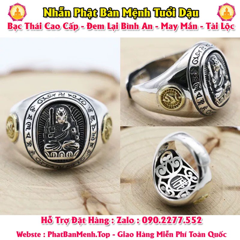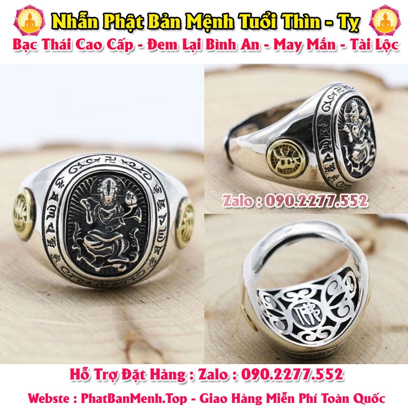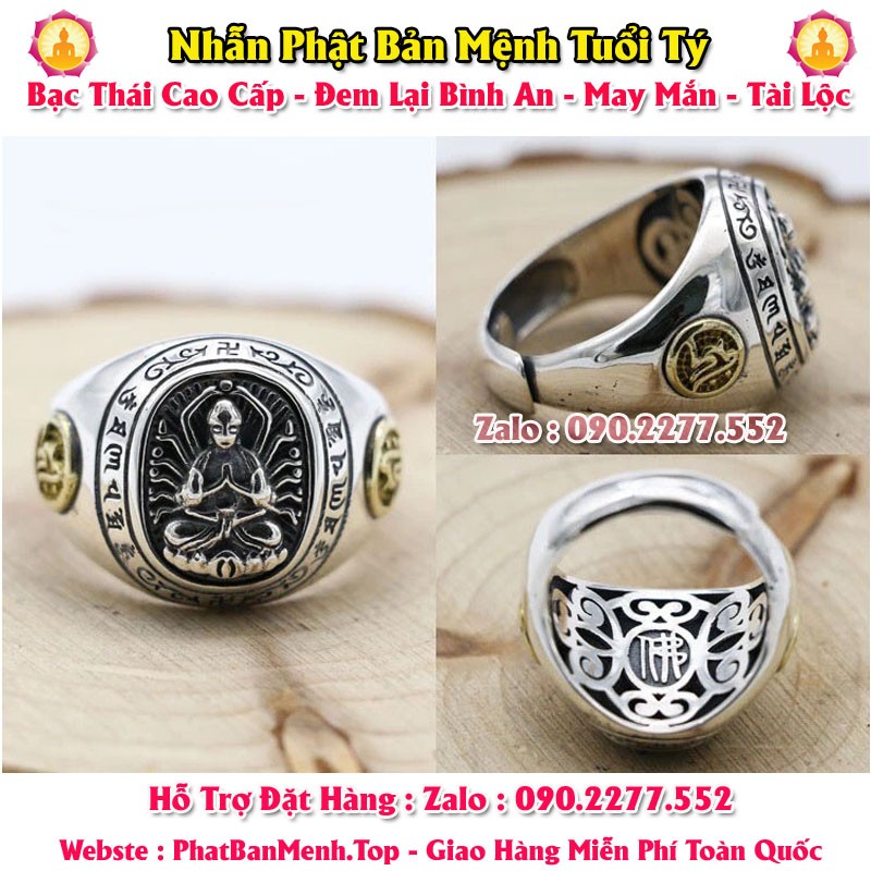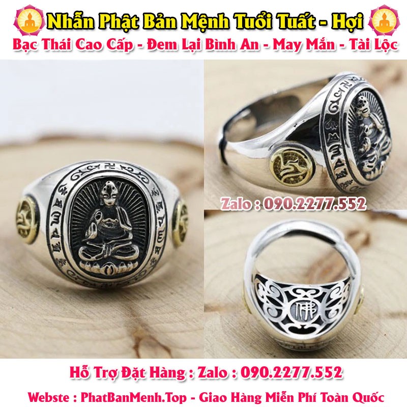 Nhẫn Phong Thủy Phật Bản Mệnh Tuổi Tuất - Tuổi Hợi ( Bạc Thái Mặt Tròn )